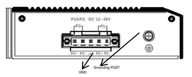 5针 3.81mm端子 输入范围:12V-36VDC P1&P2双冗余电源, 支持反接保护功能 |