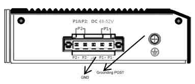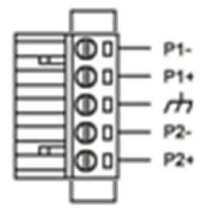 5针3.81mm端子 输入范围:48V-52VDC P1&P2双冗余电源, 支持反接保护功能 |