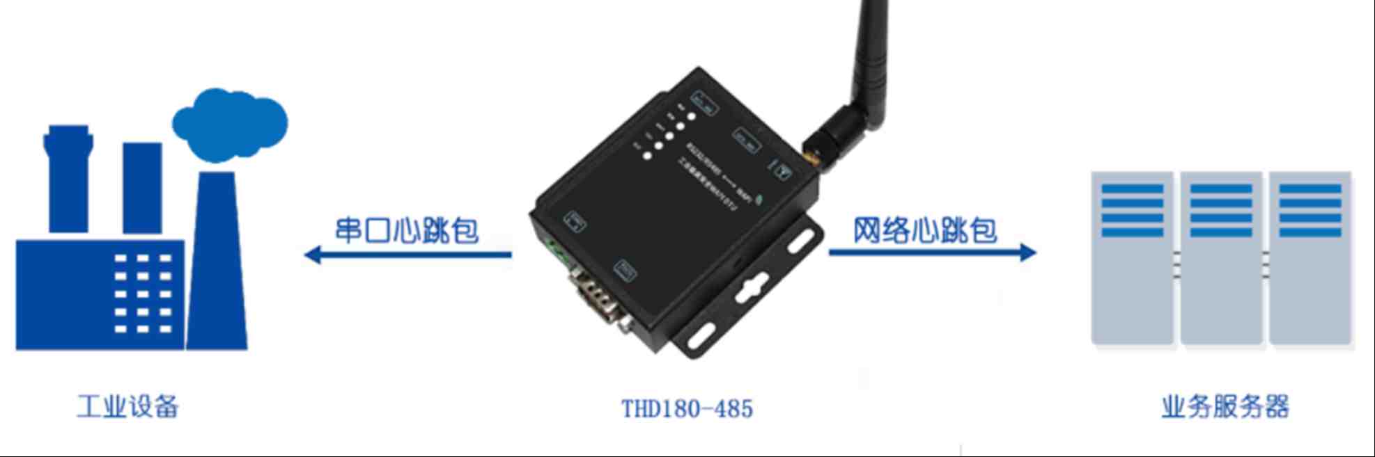 | 4、心跳监测模式 DTU180-485-WAPI Modbus支持串口心跳与网络心跳监测。 通过串口心跳包通知串口设备处于活跃状态进而主动抓取设备数据,通常用于监测那些不能主动推送数 据的传感器设备。 通过网络心跳包通知服务器处于活跃状态,通过不断发送网络心跳包维持与服务器之间的正常连接。 |